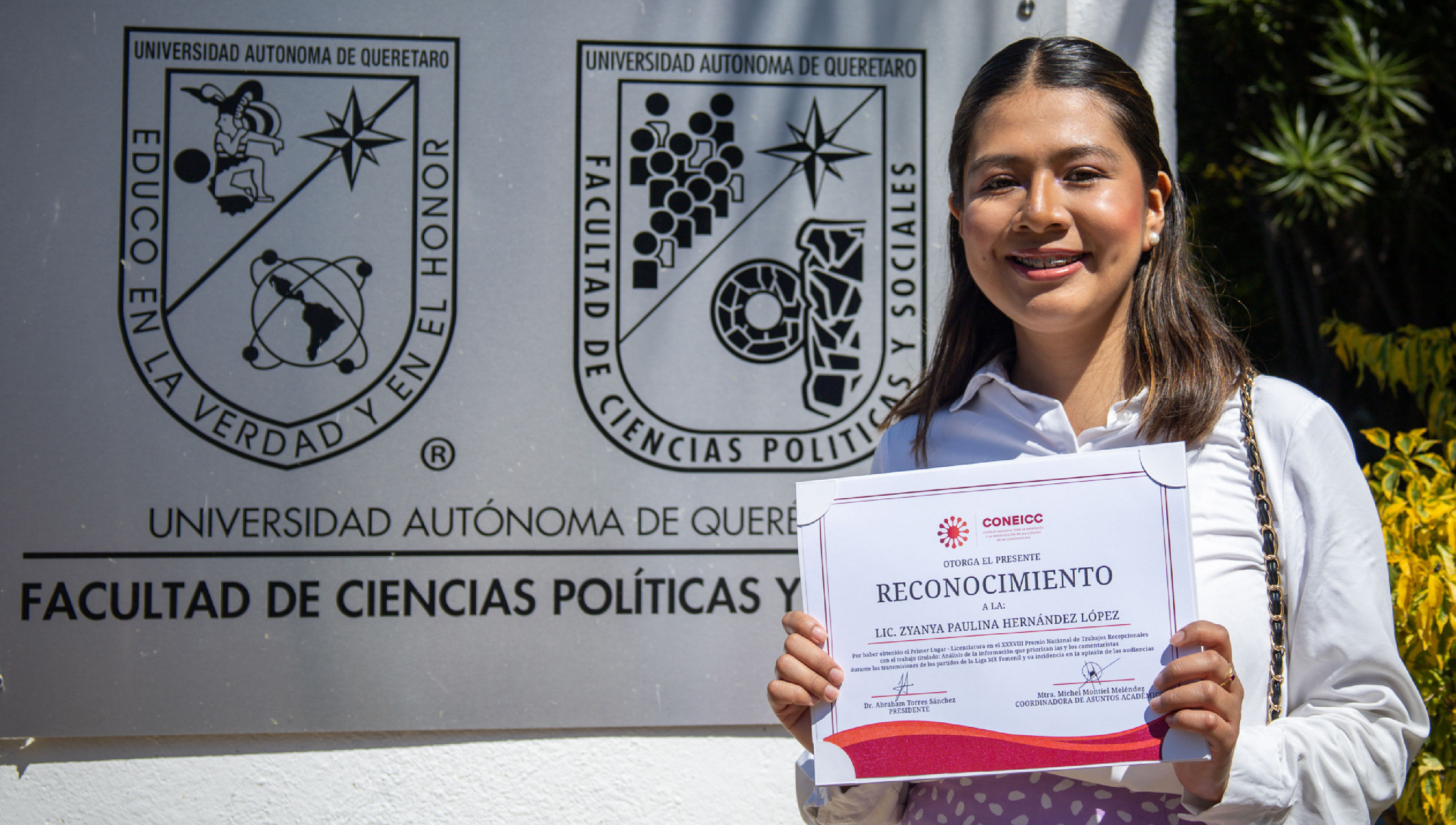 La tesis sobre fútbol femenil realizada por la Lic. Zyanya Paulina Hernández egresada de la Facultad de Ciencias Políticas y Sociales de la UAQ obtuvo el primer lugar en la categoría de Licenciatura del XXXVIII Premio Nacional de Trabajos Recepcionales que otorga el Consejo Nacional para la Enseñanza y la Investigación de las Ciencias de la Comunicación (CONEICC).